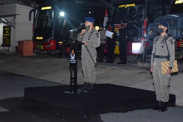 Keterangan gambar : Komandan Satuan (Dansat) Brimob Polda Kepri, Kombes Pol Mohamad Rendra Salipu, S.I.K, M.Si (kiri) pimpin pelaksanaan apel pemberangkatan personel Sat Brimob Polda Kepri BKO ke Polda Papua di Mako Brimob Polda Kepri. (Foto : ilham)
