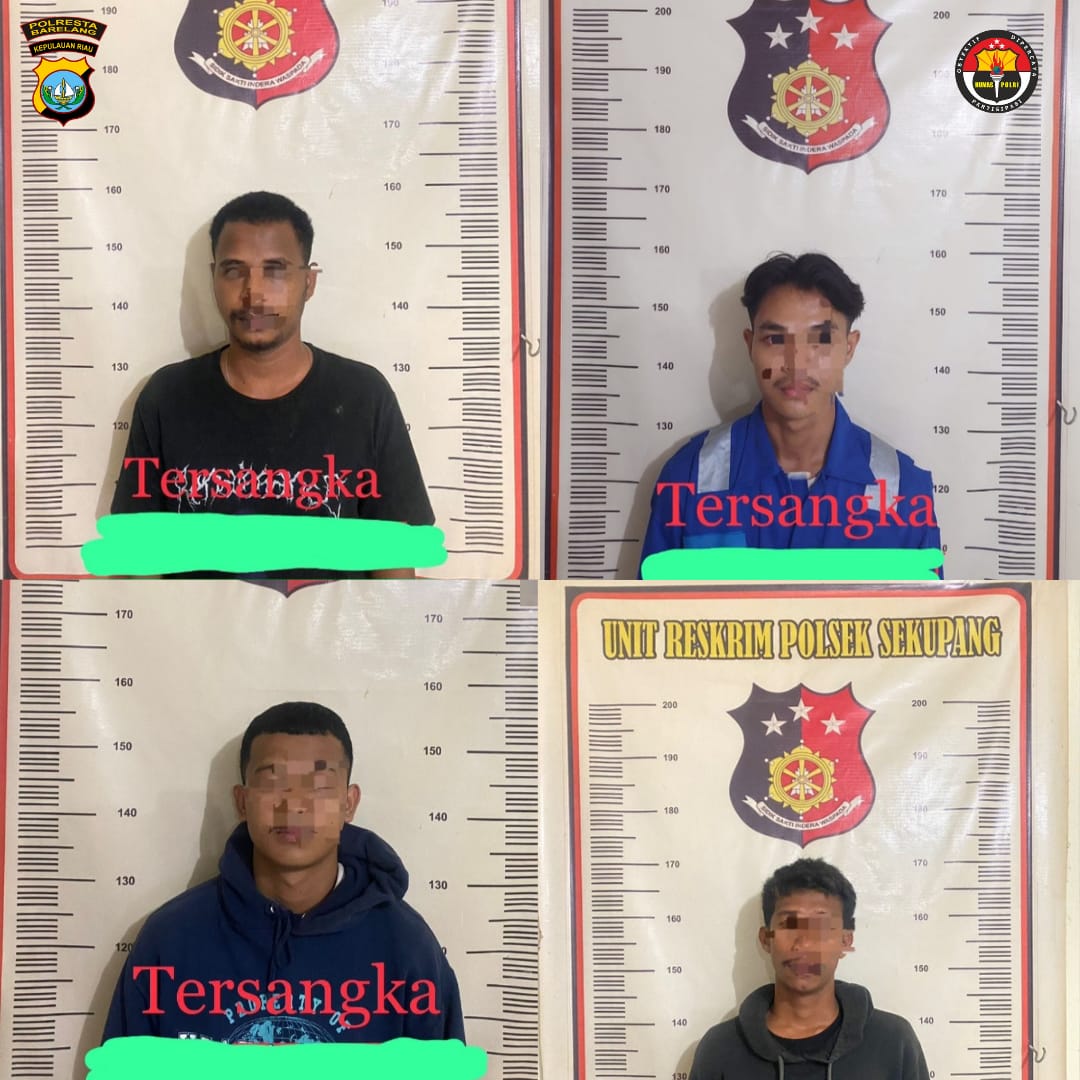 Keempat tersangka yakni AIA (22 tahun), HH (26 tahun), MA (22 tahun) dan MI (21 tahun). Kesemuanya merupakan warga Kelurahan Tanjung Riau.