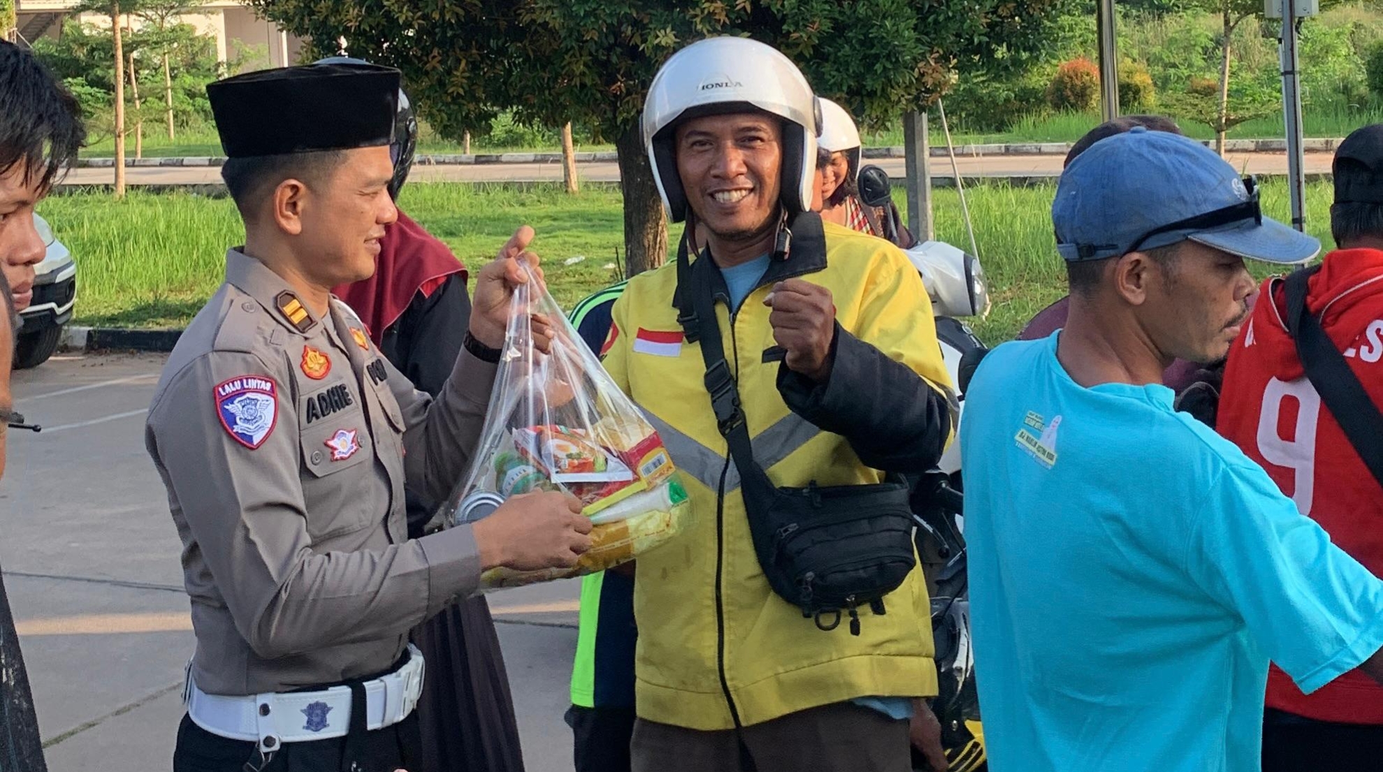- Polisi Ditlantas Polda Kepri Bagi-bagi Sembako ke Ojol hingga Petugas Kebersihan di Batam