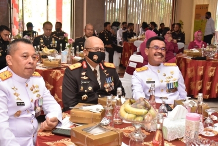Setelah upacara selesai, dilanjutkan dengan acara ramah tamah syukuran HUT ke-74 Bhayangkara salah satu acaranya yaitu pemotongan nasi tumpeng dan pemberian penghargaan kepada personel Polda Kepri.