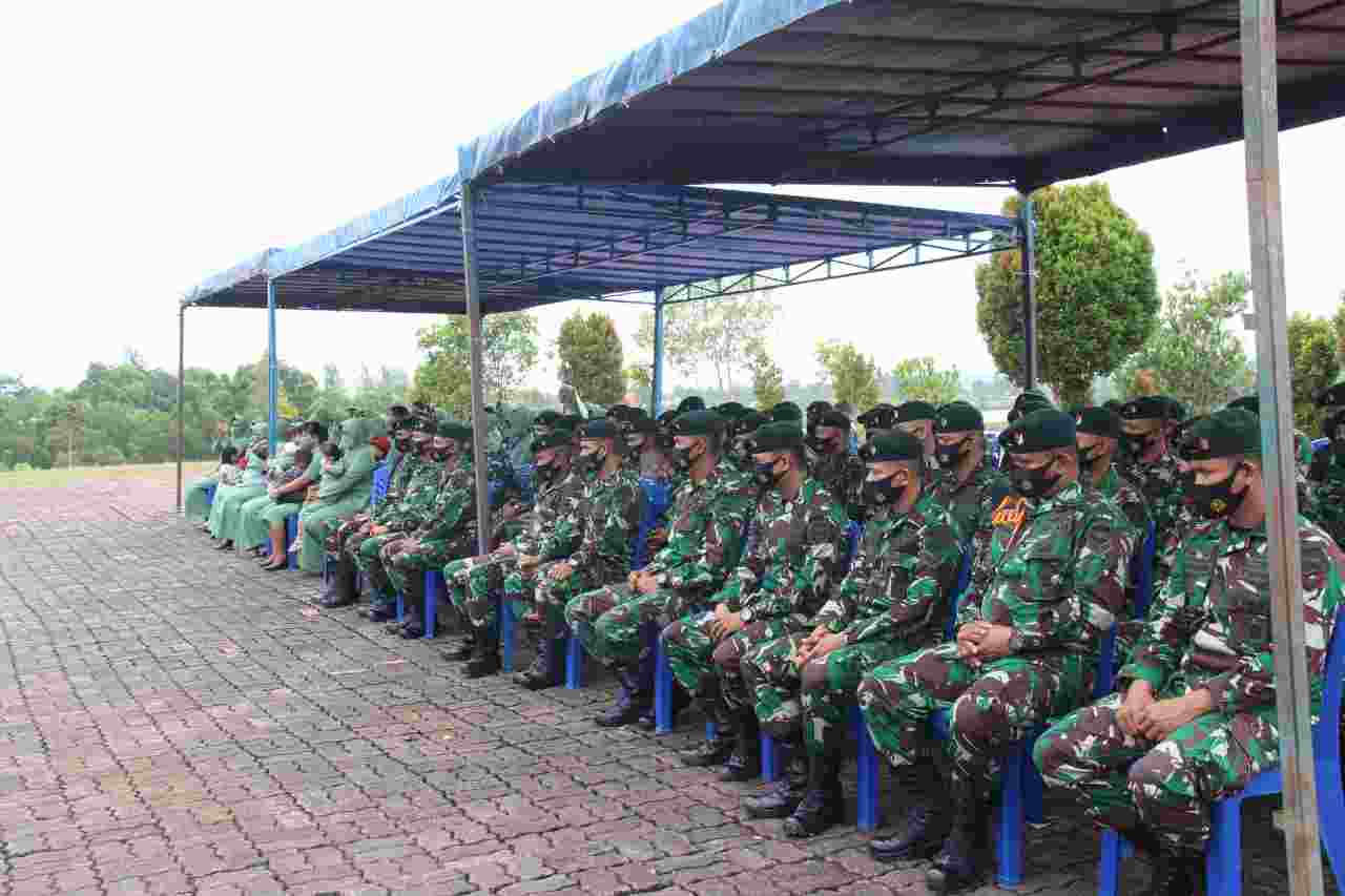 Keterangan gambar : Para anggota Kompi Senapan A beserta Ibu-ibu Persit terlihat antusias mendengarkan pengarahan yang diberikan oleh Danyonif RK 136/TS, Letkol Inf Dodiek Wardoyo. (Foto : Jajang untuk KORANBATAM.COM)