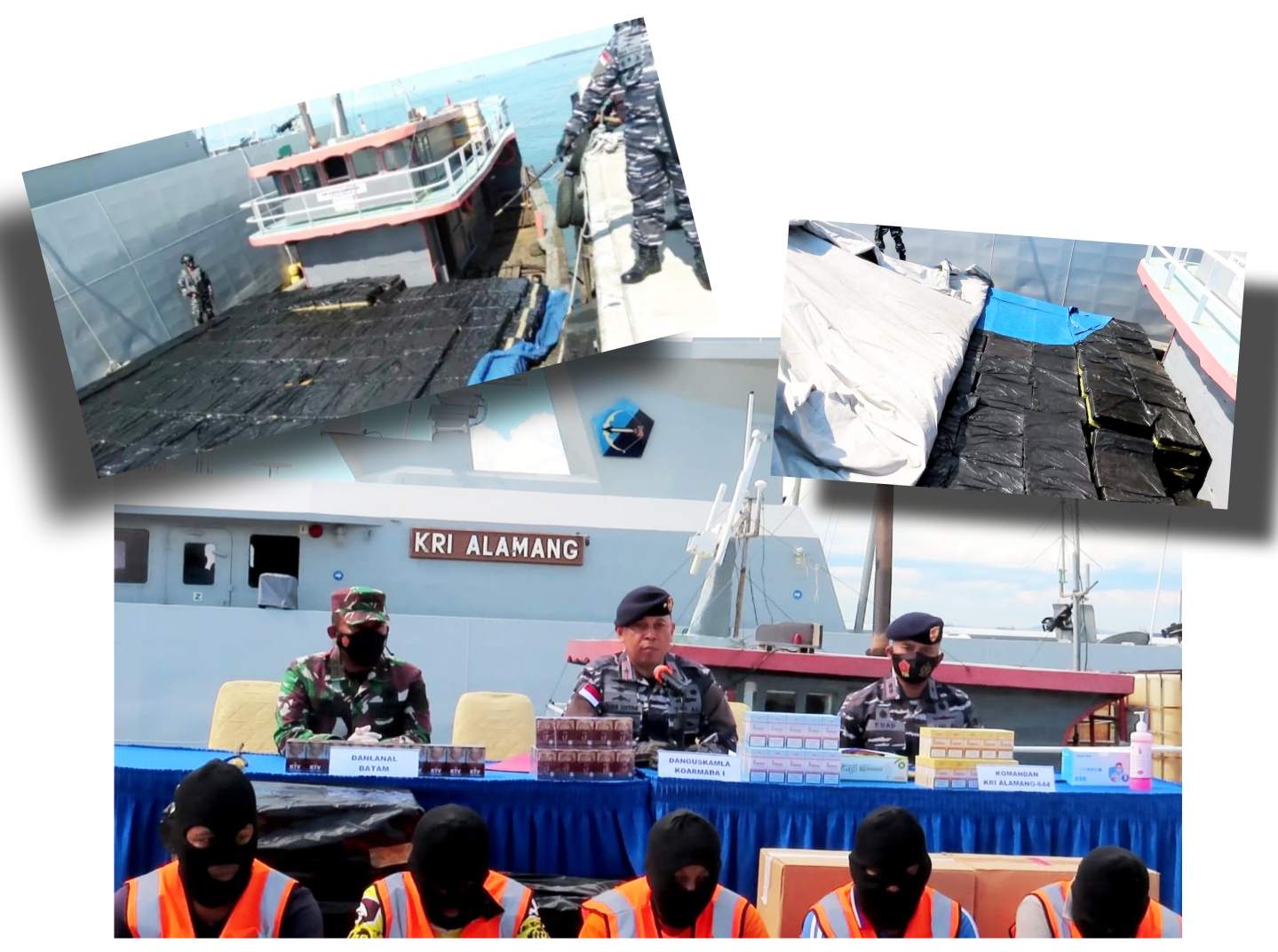 KORANBATAM.COM - Penyelundupan 1.673 bal/dus rokok tanpa cukai (Ilegal) digagalkan oleh Kapal Republik Indonesia (KRI) Alamang-644 dibawah kendali Gugus Keamanan Laut Komando Armada (Guskamla Koarmada ) I Tentara Nasional Indonesia Angkatan Laut (TNI-AL) pada Minggu (28/3/2021), di Perairan Tanjung Balai Karimun (TBK), Provinsi Kepulauan Riau (Kepri).