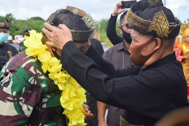 Kedatangan Pangkogabwilhan I dan rombongan disambut dengan acara adat penyambutan diantaranya seperti pengalungan bunga oleh Sekretaris Daerah (Sekda) Propinsi Kepulauan Riau Tengku Said Fadillah.
