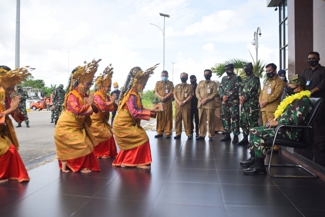Kedatangan Pangkogabwilhan I ke Makorem 033/WP disambut oleh Komandan Korem Brigjen TNI Harnoto.S.Sos dan para Pejabat Korem.