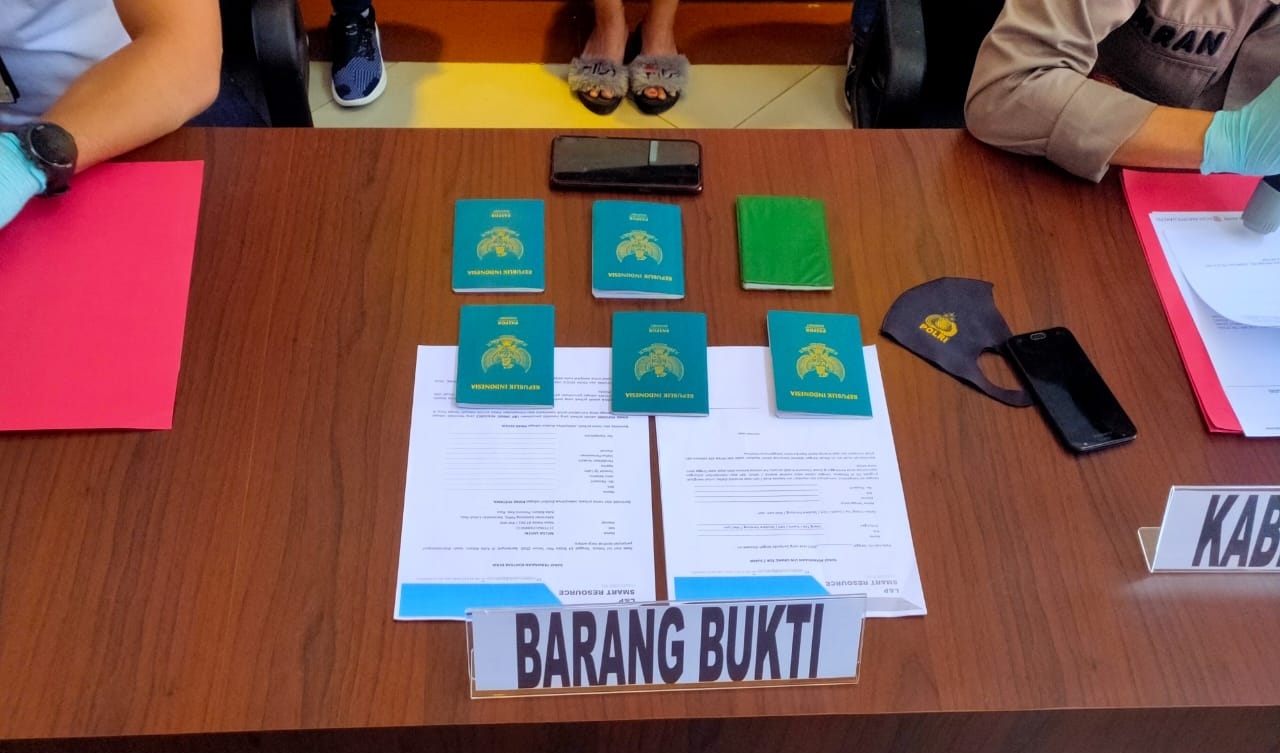 “Di sini, barang bukti (BB) yang diamankan adalah berupa satu unit ponsel dan enam buku paspor,” ujarnya.