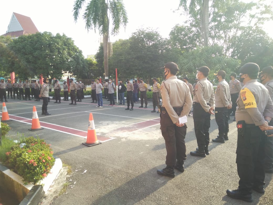 Keterangan gambar : Apel pengamanan aksi unjuk rasa dan mogok kerja yang dilakukan oleh Serikat Pekerja Buruh, penolakan RUU Omnibus Law Cipta Lapangan Kerja. (Foto : Polresta Barelang untuk KORANBATAM.COM)