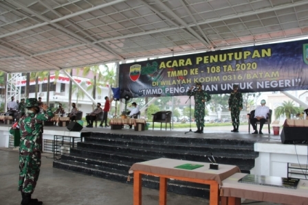 Upacara penutupan kegiatan TMMD ke 108 dipimpin langsung oleh Komandan Korem (Danrem) 033/Wira Pratama, Brigjen TNI Harnoto, S. Sos. Pada kesempatan tersebut juga diserahkan berita hasil pekerjaan TMMD dari Komandan Satgas yakni Dandim 0316/Batam, Letkol Inf Ahmad Daud Harahap kepada Wali Kota Batam, Muhammad Rudi.